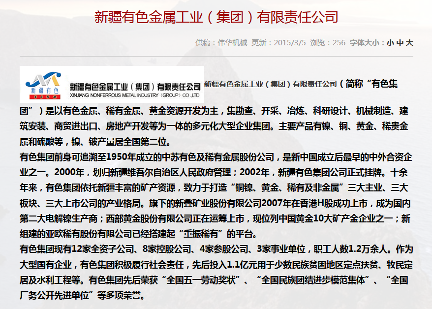 • 合作單位:新疆有色金屬工業(yè)(集團(tuán))有限責(zé)任公